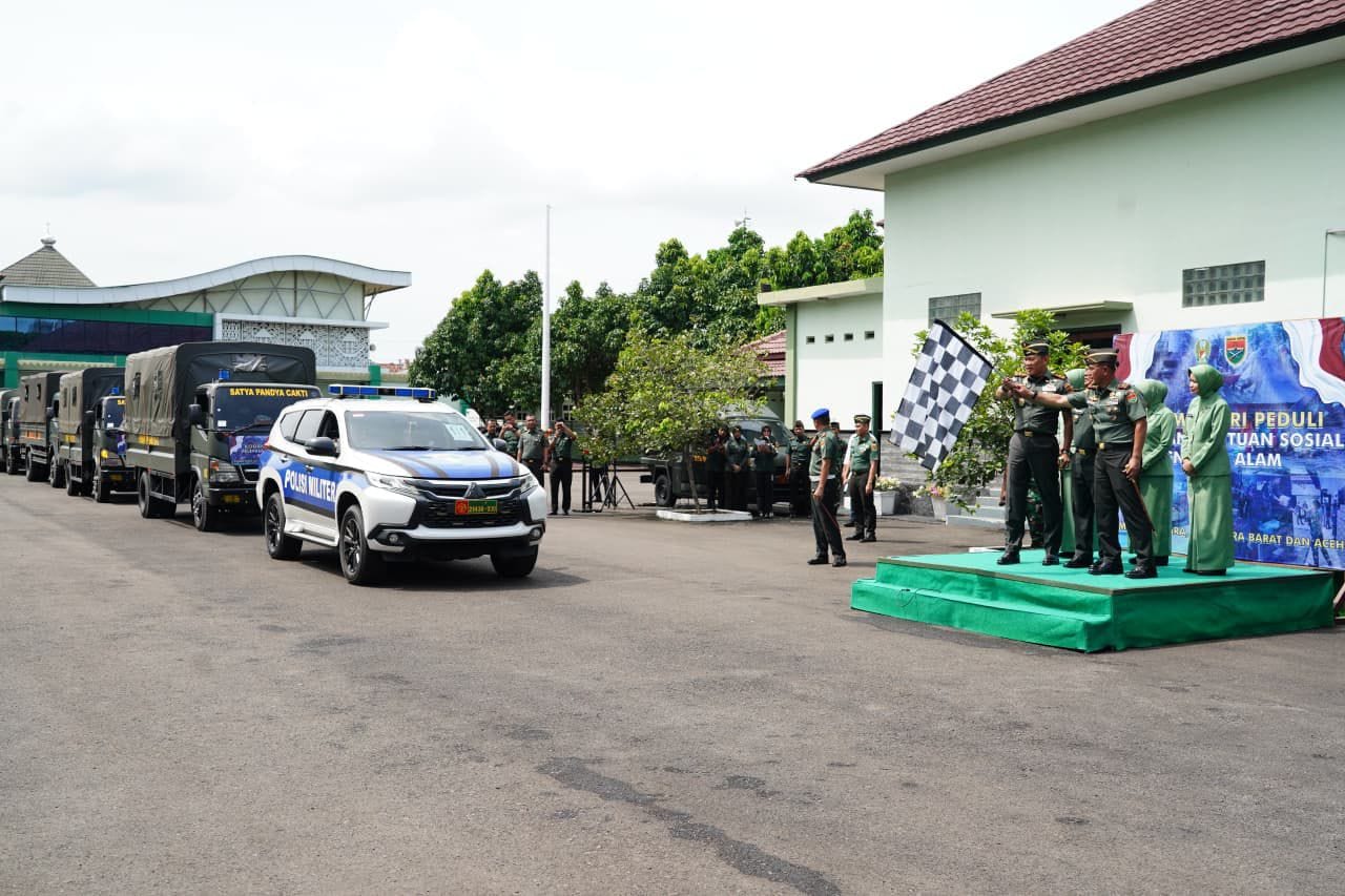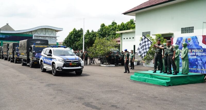 DIPLOMASI.CO.ID (LAMPUNG) – Danrem 043/Garuda Hitam, Brigjen TNI Haryantana, S.H., bersama Pangdam XXI/Radin Inten, Mayjen TNI Kristomei Sianturi, S.Sos., M.Si.(Han)., serta Kasdam XXI/Radin Inten, melepas keberangkatan kendaraan logistik bantuan kemanusiaan bagi korban bencana alam di Aceh, Sumatera Utara, dan Sumatera Barat.