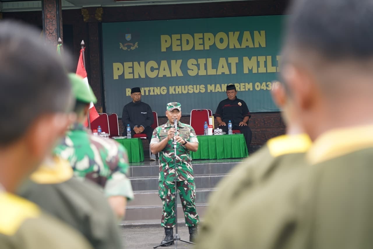 Komandan Korem (Danrem) 043/Gatam, Brigjen TNI Haryantana, S.H., dalam amanat tertulis yang dibacakan Kasiops Kasrem 043/Gatam Kolonel Inf A. Wakhid Dedy Setyawan, menekankan pentingnya penguasaan materi bela diri sebagai identitas prajurit yang profesional.