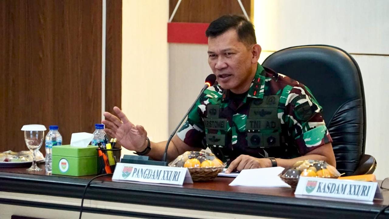 DIPLOMASI.CO.ID (BANDARLAMPUNG) – Pangdam XXI/Radin Inten, Mayor Jenderal (Mayjen) TNI Kristomei Sianturi, S.Sos., M.Si. (Han), menerima paparan kegiatan cetak sawah dari Kodim 0426/Tulang Bawang dan Kodim 0429/Lampung Timur. Kegiatan tersebut berlangsung di Ruang A. Yani Makodam XXI/Radin Inten, Jl. Teuku Umar No.85, Kelurahan Penengahan, Kecamatan Kedaton, Kota Bandar Lampung, pada Rabu (15/04/2026).