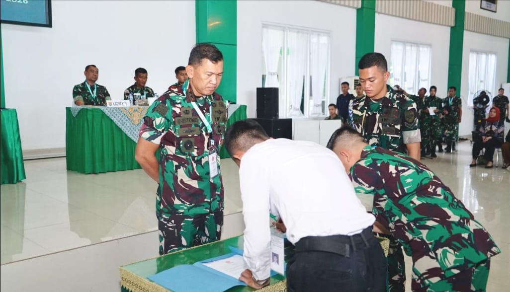 DIPLOMASI.CO.ID (BANDARLAMPUNG) — Pangdam XXI/Radin Inten, Mayjen TNI Kristomei Sianturi, S.Sos., M.Si. (Han), yang juga sebagai Ketua Panitia Seleksi Integratif Daerah (Panselinda) Lampung melaksanakan kegiatan penandatanganan fakta integritas panitia sekaligus memberikan pengarahan kepada orang tua/wali dan calon peserta Taruna Akademi TNI Tahun Anggaran 2026. Kegiatan tersebut berlangsung di Aula Sudirman Makodam XXI/RI, Jl. Tengku Umar, Penengahan, Kecamatan Kedaton, Kota Bandar Lampung, pada Selasa (28/4/2026).