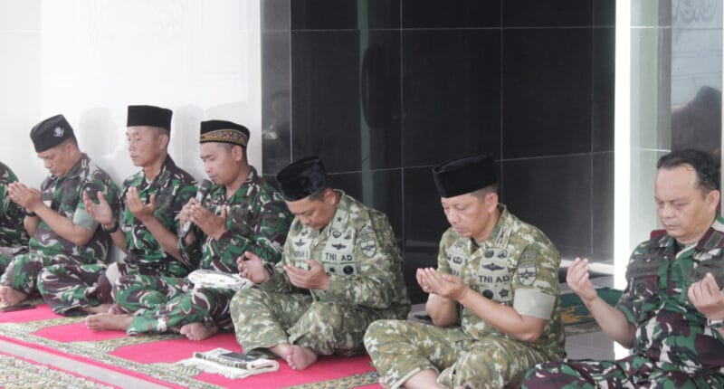 DIPLOMASI.CO.ID (LAMPUNG) – Prajurit, PNS Korem 043/Gatam mengikuti do’a bersama jelang Hari Juang TNI-AD Ke-80 Tahun 2025, yang dilaksanakan usai pelaksanaan sholat Jum’at bersama di Masjid Al-Ittihad Makorem 043/Gatam Metro Pusat Kota Metro, yang dipimpin oleh Babintal Korem 043/Gatam Sertu Dwi Cahyono. Jumat (12/12/2025)