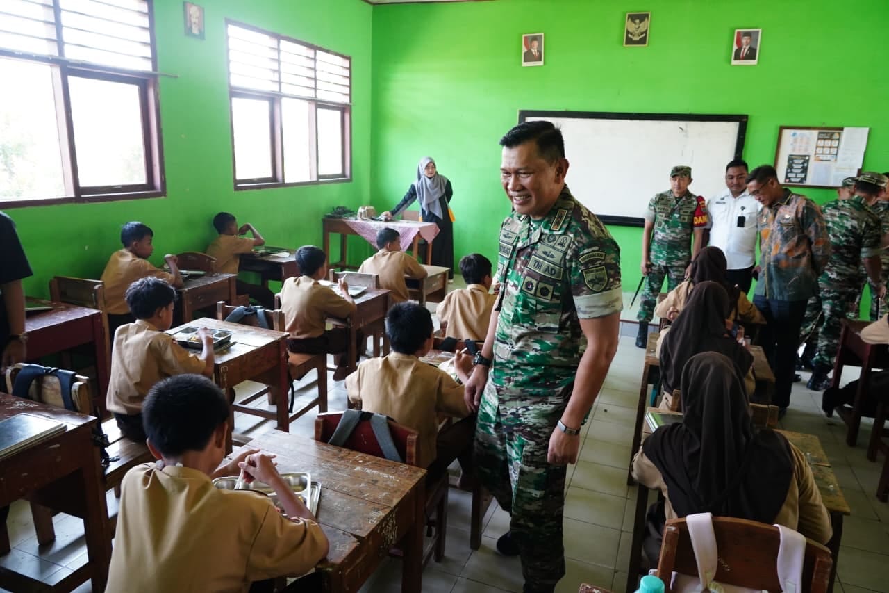 DIPLOMASI.CO.ID (LAMPUNG) – Pangdam XXI/Radin Inten Mayjen TNI Kristomei Sianturi, S.Sos., M.Si.(Han) meninjau langsung pelaksanaan Program Makan Bergizi Gratis (MBG) di SMP Negeri 5 Natar, Desa Candimas, Kecamatan Natar, Kabupaten Lampung Selatan, Jumat (26/9/2025).